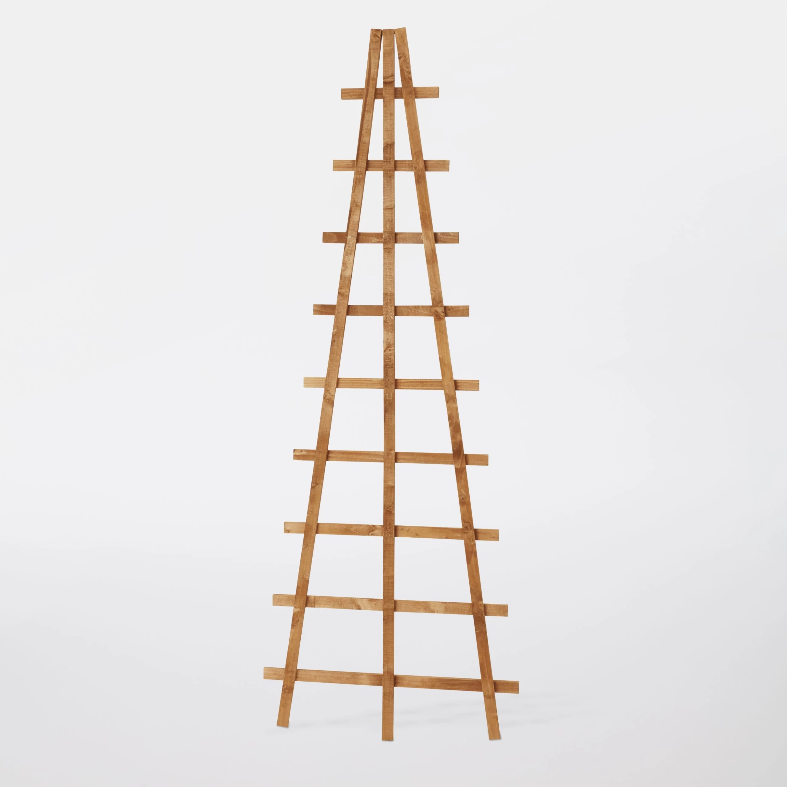 This pine trellis is designed to act as support for climbing flowers and plants.