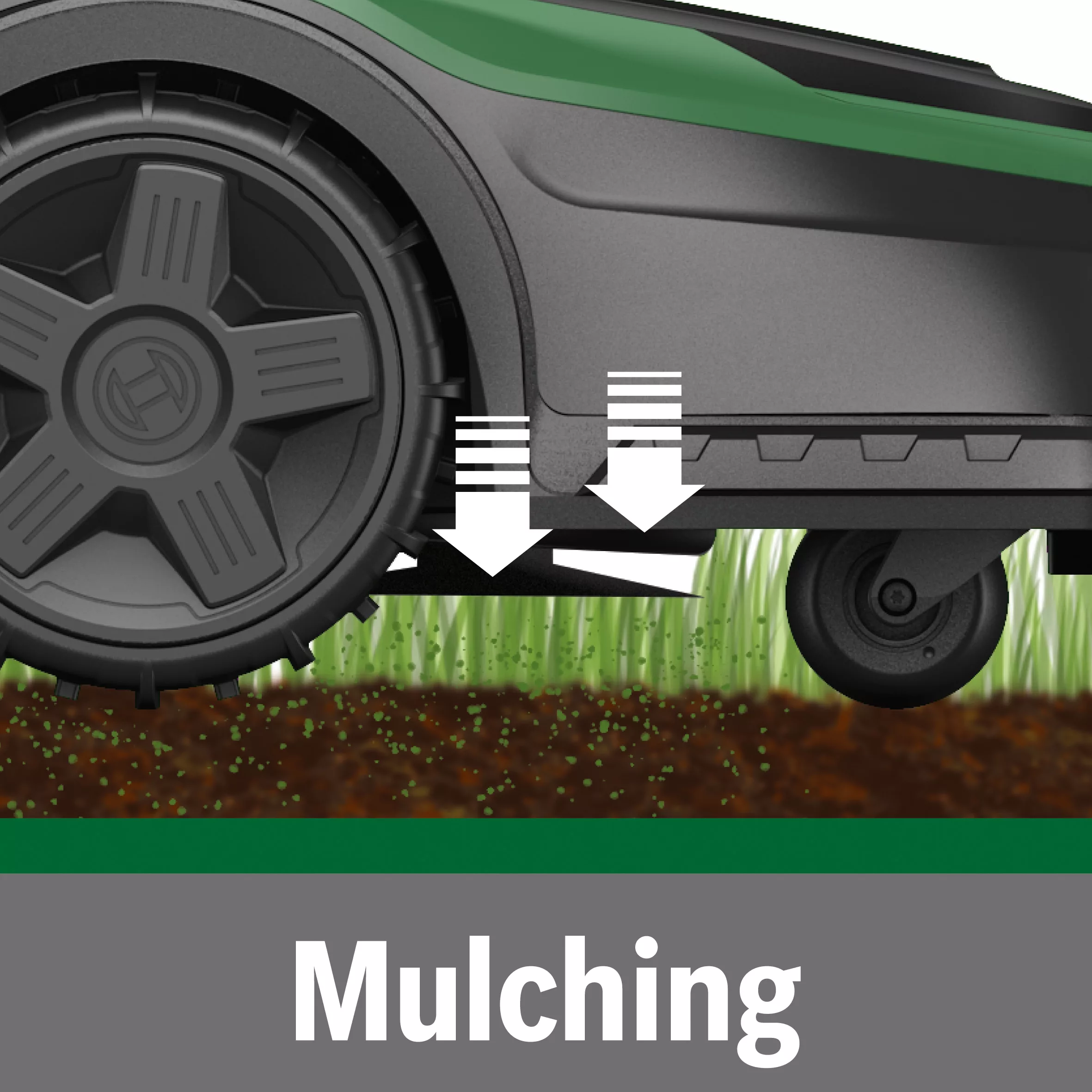 - LogiCut maps the lawn and cuts in efficient parallel lines