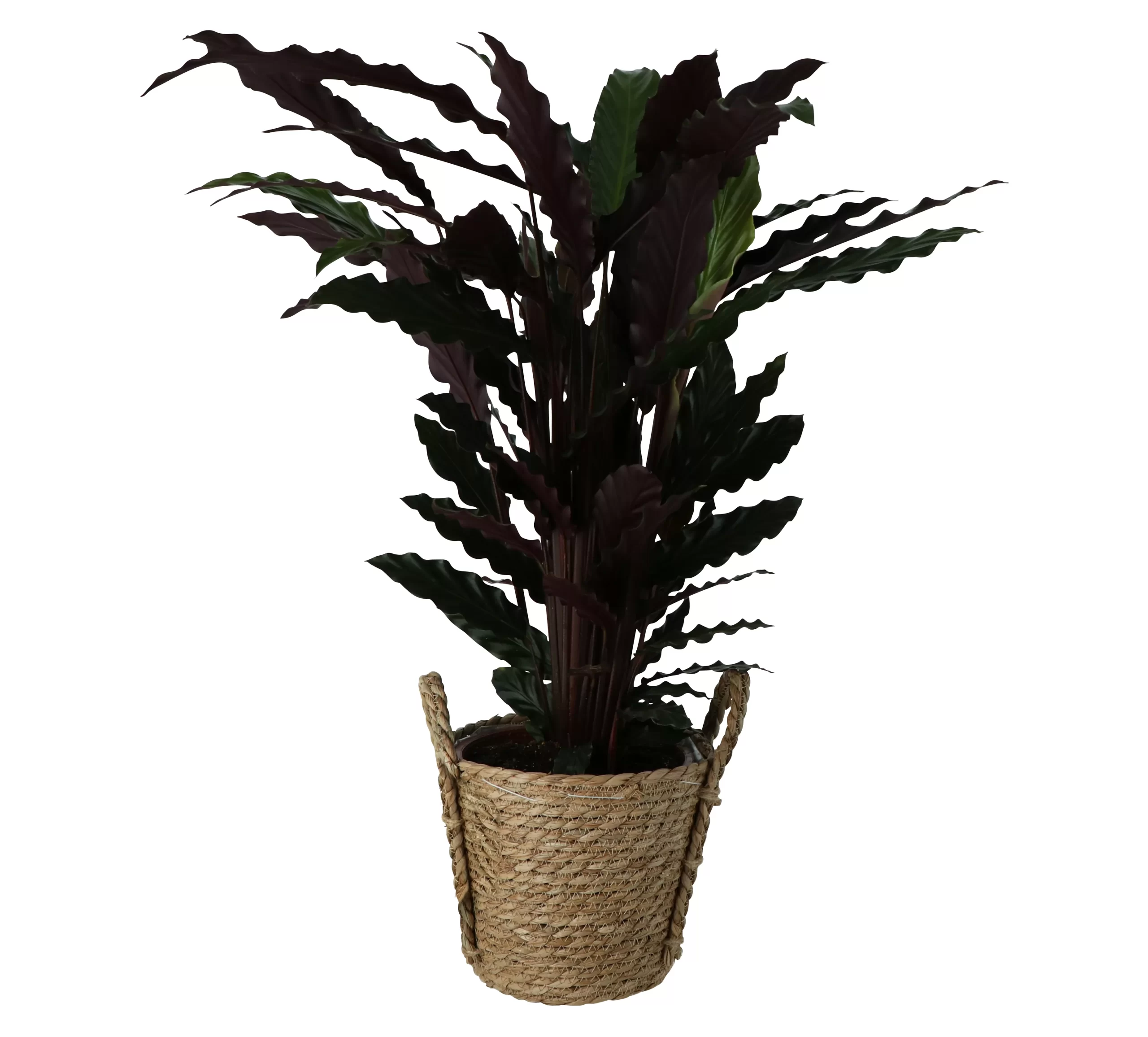 Calatheas are an extremely popular houseplant, loved for their painterly, lush foliage. This calathea comes with a beautiful natural basket and will instantly brighten your indoors