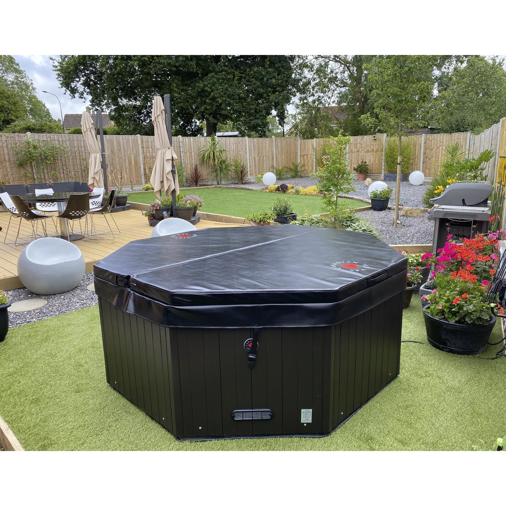 The Canadian Spa Company Muskoka Plug & Play spa fits in almost any location. This roomy but compact spa is packed with features of a full-sized spa and easily accommodates 4 adults. It features 14 adjustable stainless steel hydrotherapy jets and is energy-efficient and easy to install – just plug it into an outlet and start relaxing right away! The Muskoka uses 50 sq. ft of filtration along with a built-in ozone generator to keep your water crystal clear without hassle. The multi-coloured LED lighting provides you with the perfect way to truly unwind after a long day.