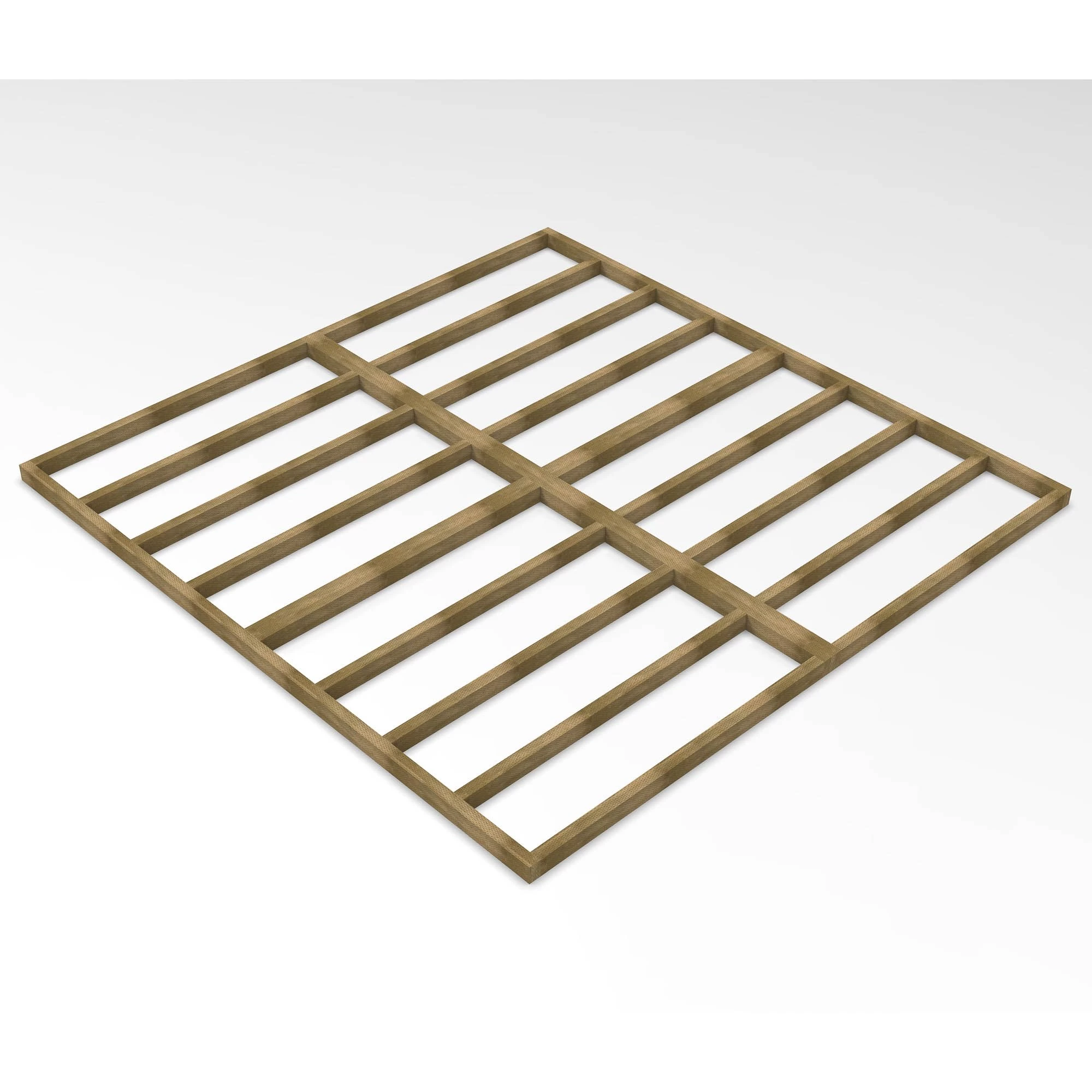 This wooden shed base provides and solid, quick, easy and effective solution to preparing a base for a Forest 10×10 ft shed. Sheds must always be built on a solid and level base and poured concrete or concrete slabs are usually recommended but these do add cost, time and complexity. This wooden base is a quick and easy alternative to slabs or poured concrete. It has the added benefit of raising the shed, further isolating it from the ground which helps to prevent water splashback in heavy rain. This robust and long-lasting base has tiny incisions that go deep into the timber that allow the pressure treatment preservative to penetrate deep into timber, protecting it from rot and making it suitable for ground contact.