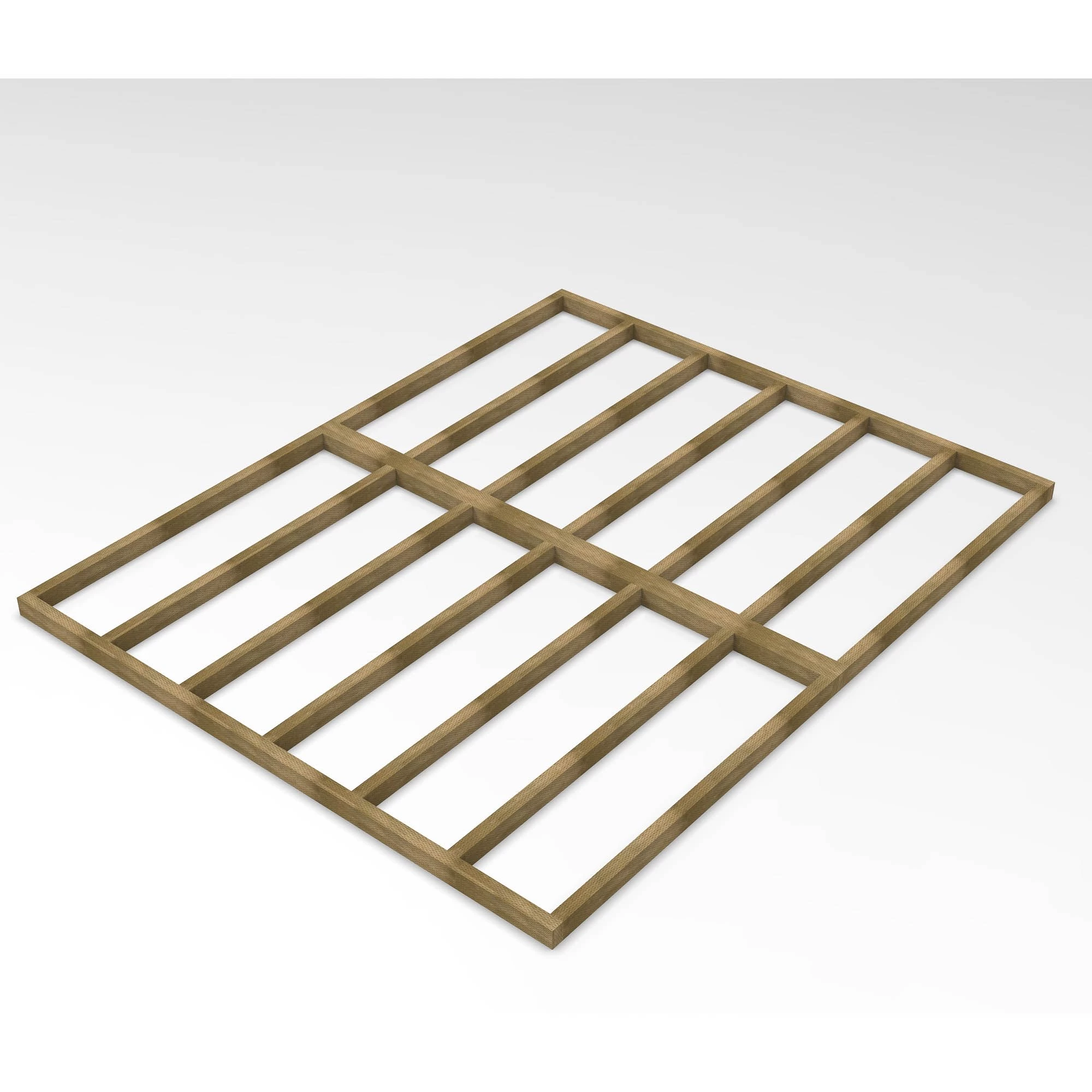 This wooden shed base provides and solid, quick, easy and effective solution to preparing a base for a Forest 10×8 ft shed. Sheds must always be built on a solid and level base and poured concrete or concrete slabs are usually recommended but these do add cost, time and complexity. This wooden base is a quick and easy alternative to slabs or poured concrete. It has the added benefit of raising the shed, further isolating it from the ground which helps to prevent water splashback in heavy rain. This robust and long-lasting base has tiny incisions that go deep into the timber that allow the pressure treatment preservative to penetrate deep into timber, protecting it from rot and making it suitable for ground contact.