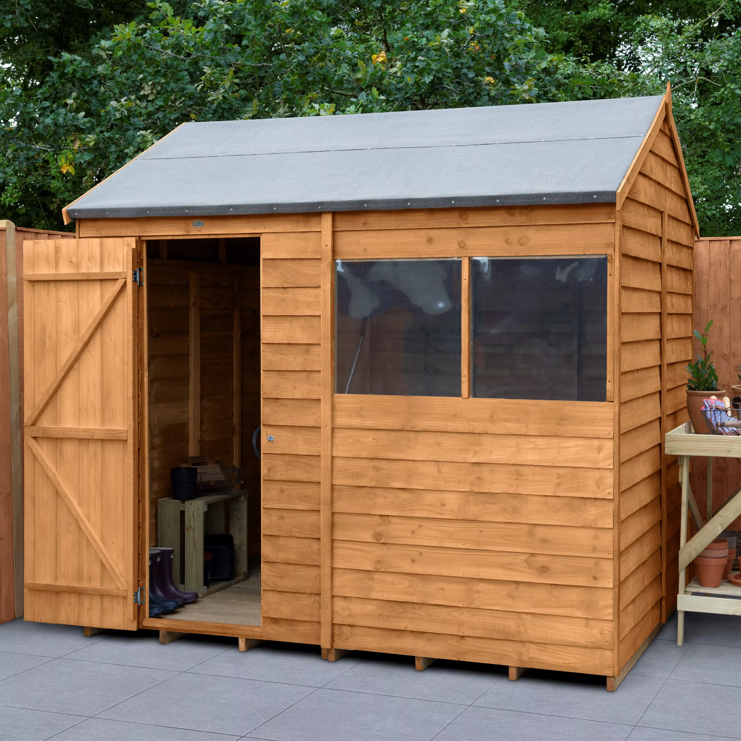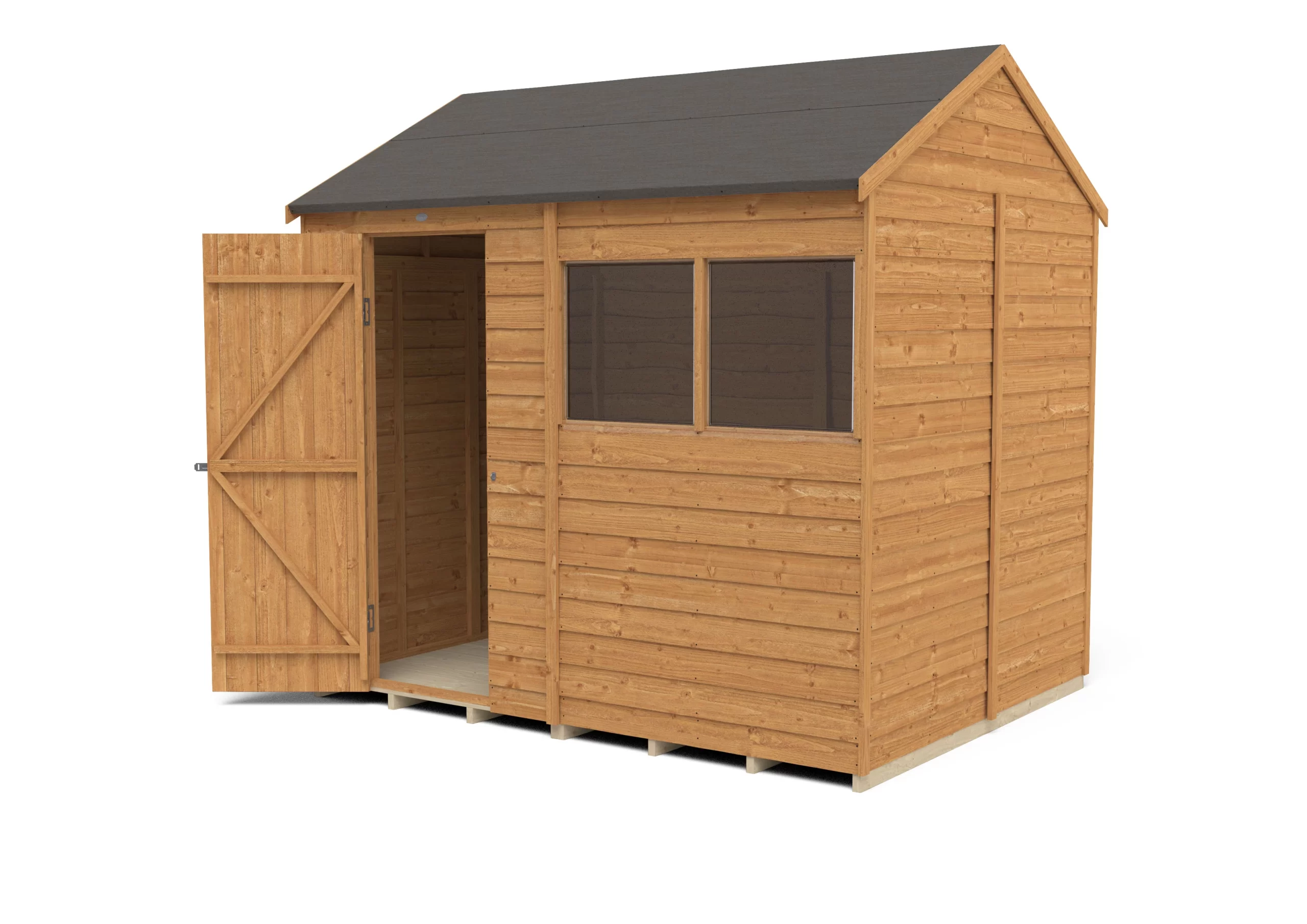 The Overlap Dip Treated 8×6 Reverse Apex Shed from Forest is an excellent storage solution. The apex roof with increased headroom means the interior space can be used to its greatest storage potential whilst the windows let in plenty of light.