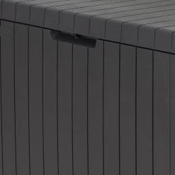 Keter City Box Graphite Wood Effect Flat Garden Storage 113L