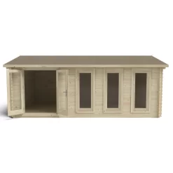Forest Garden Melbury 4×3 Toughened Glass Pent Loglap Solid Wood Cabin With Double Door