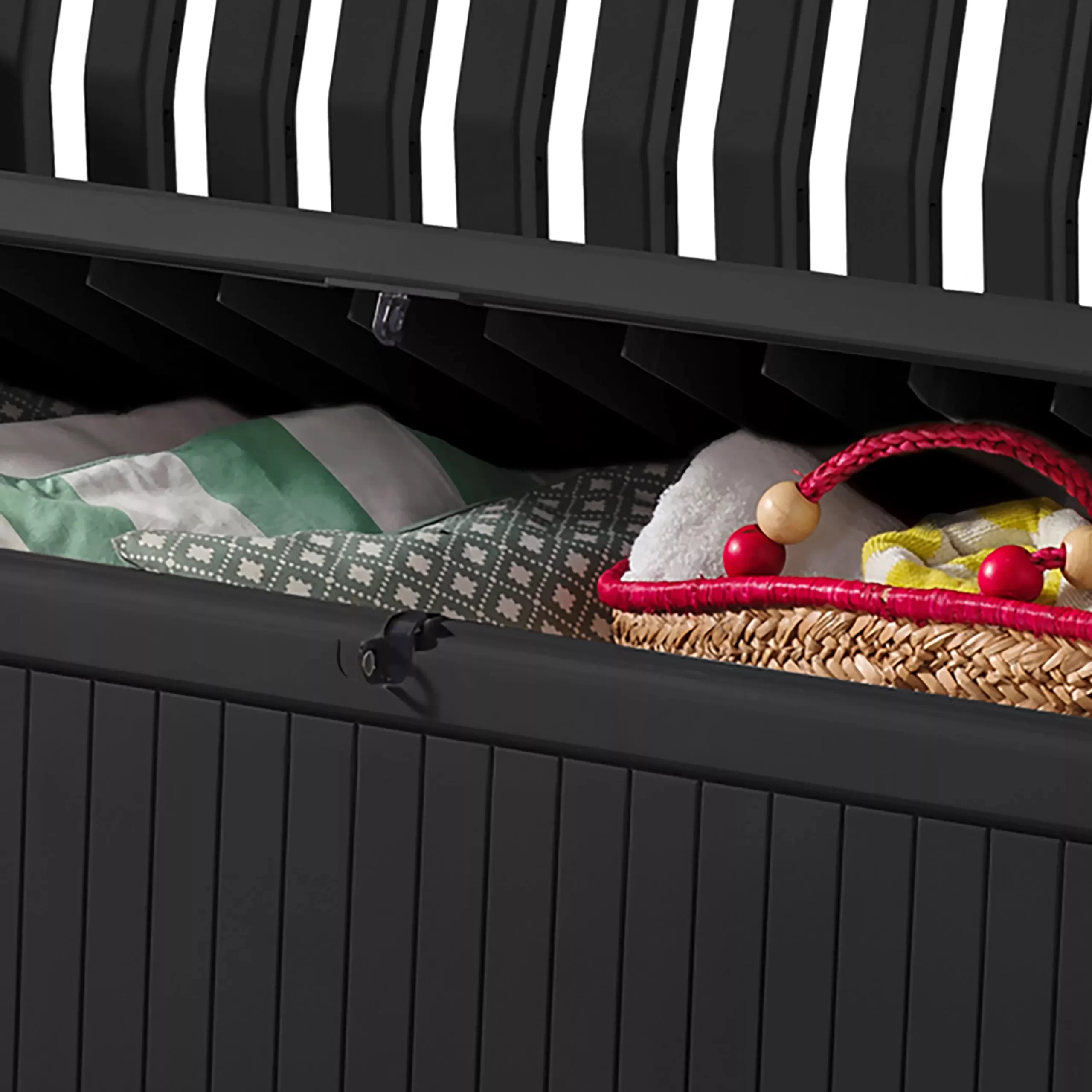 - Ideal outdoor storage bench for garden tools and equipment, furniture cushions, garden games and accessories