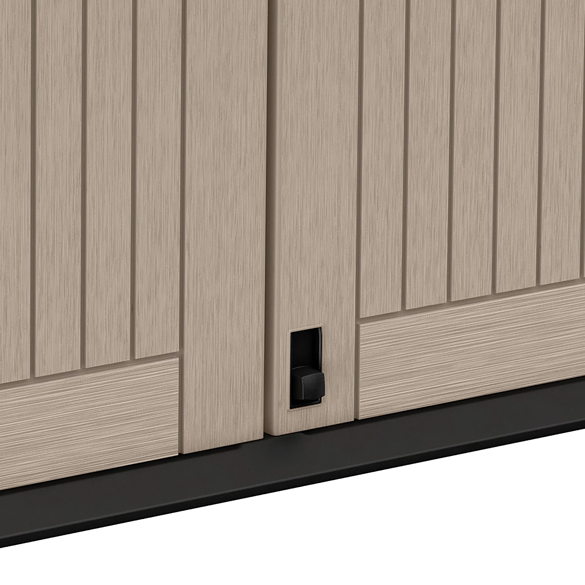 Equally at home indoors or outside, the Store-It-Out MIDI gives you 880L of well-ventilated storage space. From storing your bins to protecting you gardening equipment from the elements, this Keter 880L storage box is the perfect addition to any garden. It opens from the top or from the front with its classic look wood-textured doors, and is lockable for complete security. It even has a sturdy built-in floor panel to keep your items clean and dry and a built-in support for a shelf (shelf not included). With the Store-It-Out MIDI, it’s easy to keep your items secure yet accessible.