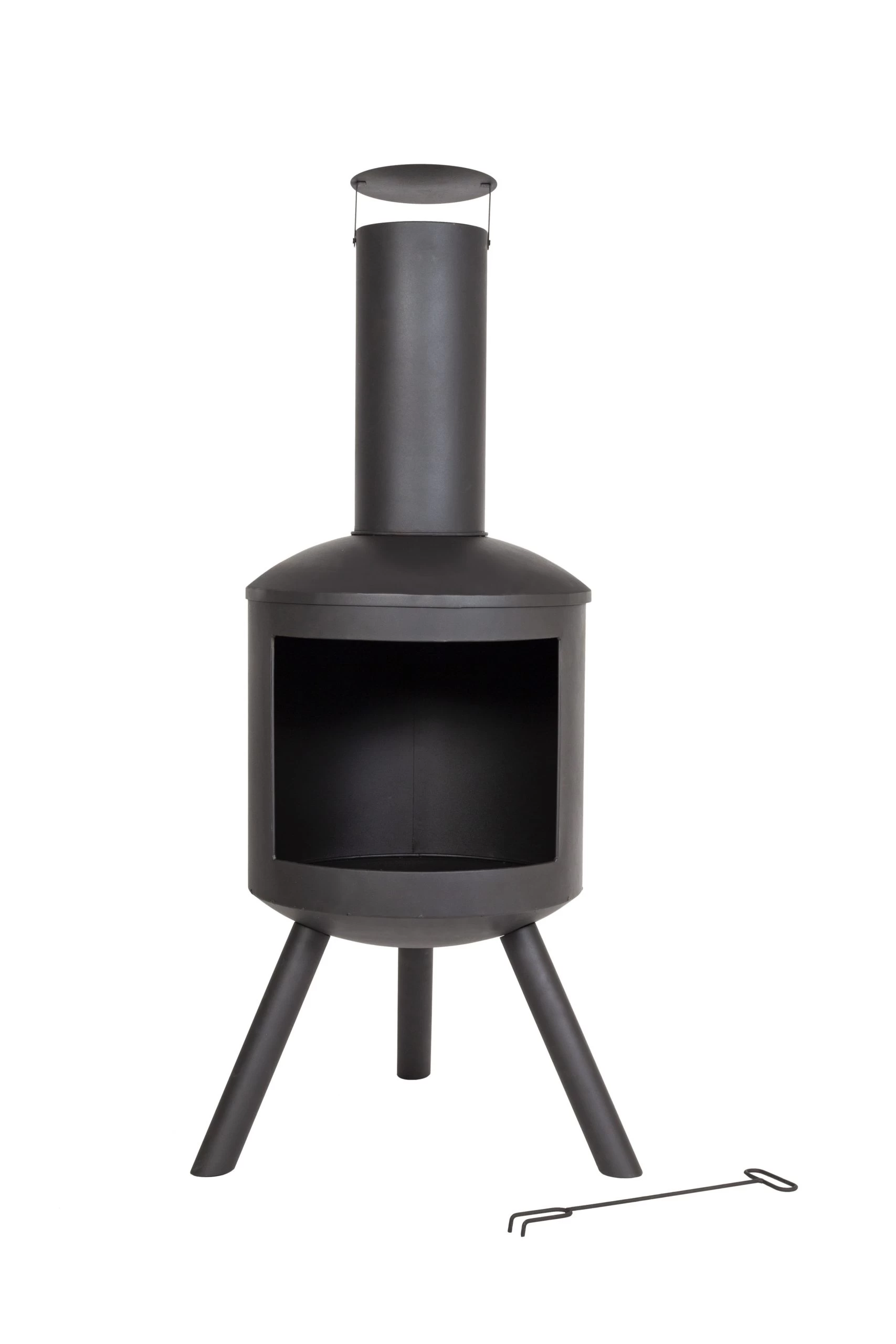 - Stylish steel chimenea with a black high temperature paint finish