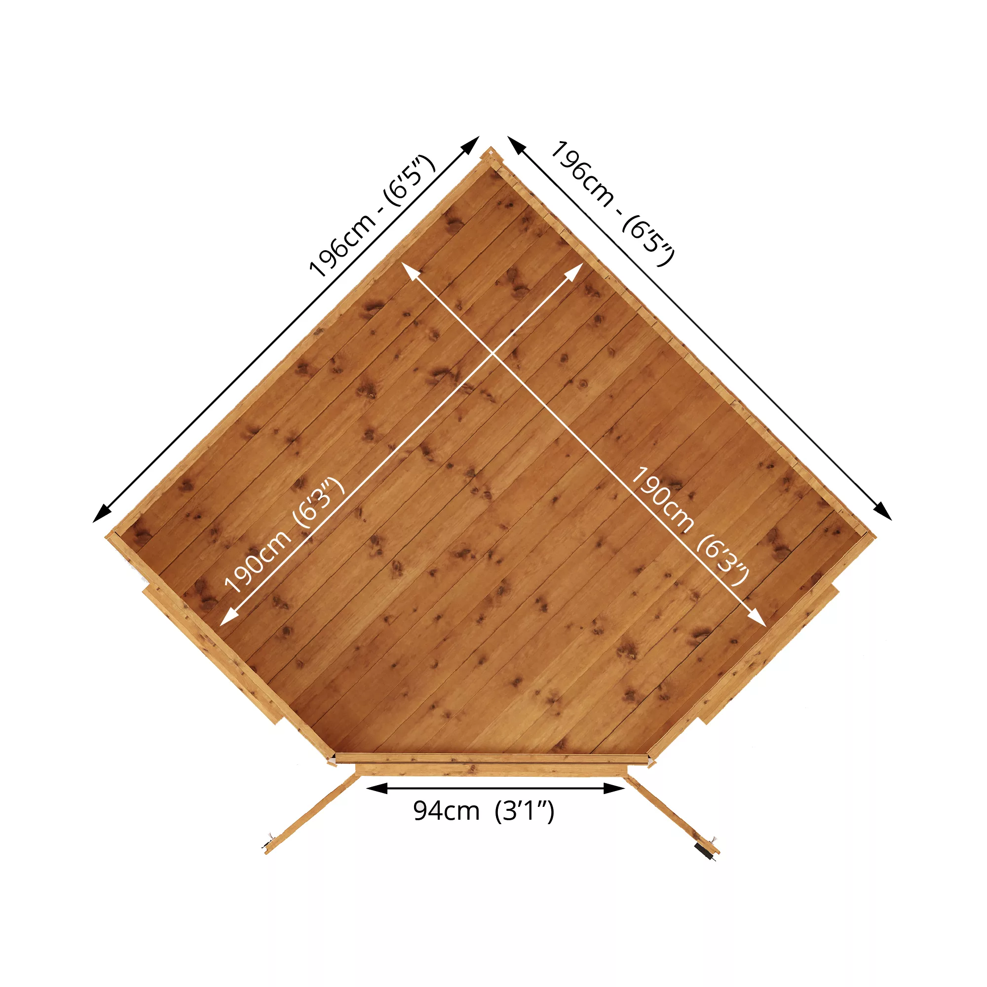 The Mercia 7 x 7 Corner Summerhouse offers an open and bright interior, ideal for seating, shelving and coffee tables. Our clever design ensures this summerhouse will fit perfectly into the corner of the garden, helping to maximise the usable space. Featuring floor to ceiling styrene glazed windows and fully styrene glazed French doors, this summerhouse is ideal for those looking for somewhere to sit back, relax and enjoy panoramic views of the garden. The walls of this summerhouse are constructed using premium horizontal interlocking tongue and groove boards with a shiplap profile. The shiplap profile includes a protective and aesthetically pleasing lip to create a strong, weatherproof panel.