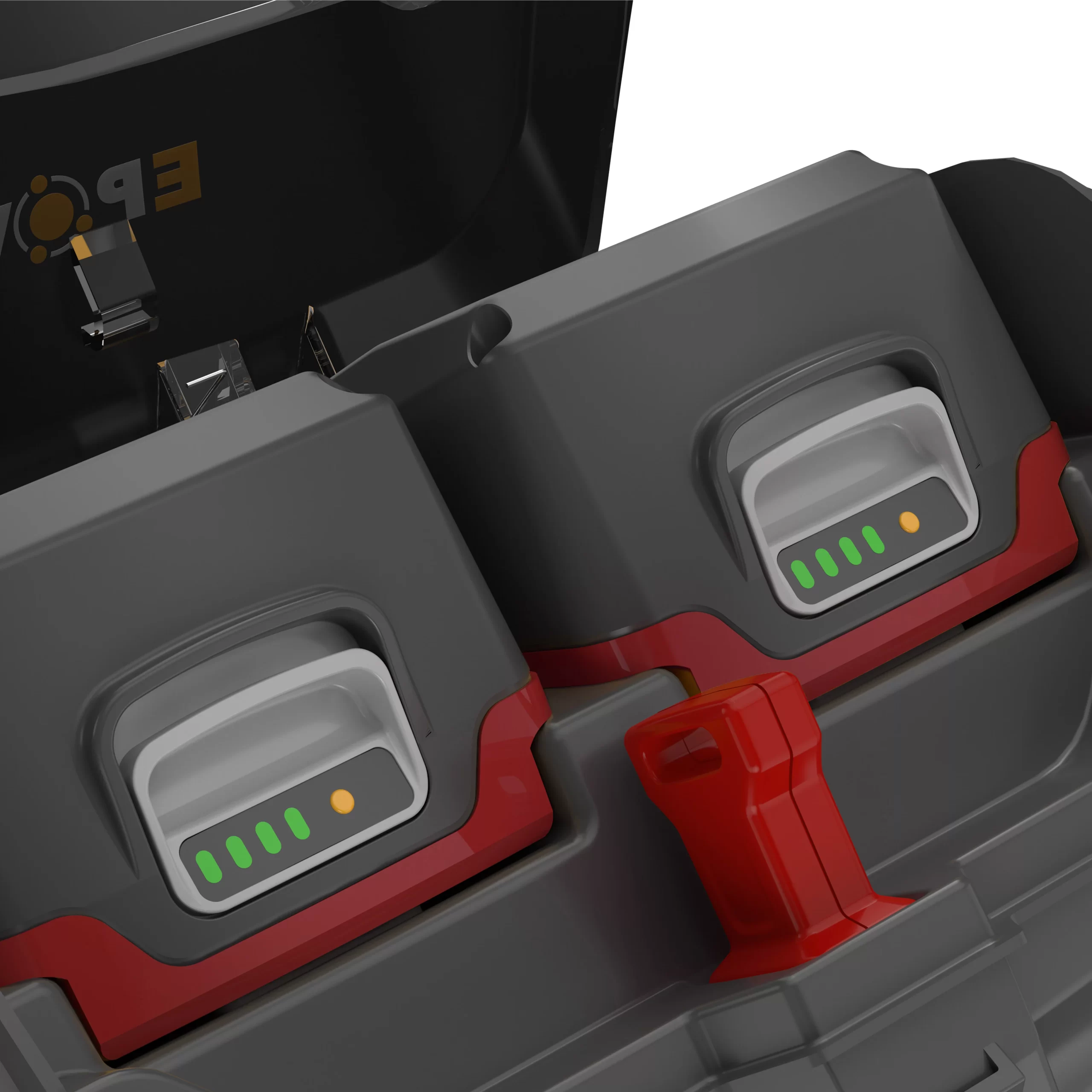 - Powered by 2 x 4Ah (20V) smart E-power batteries that provide ample power to cut lawns up to 100sqm from one charge.