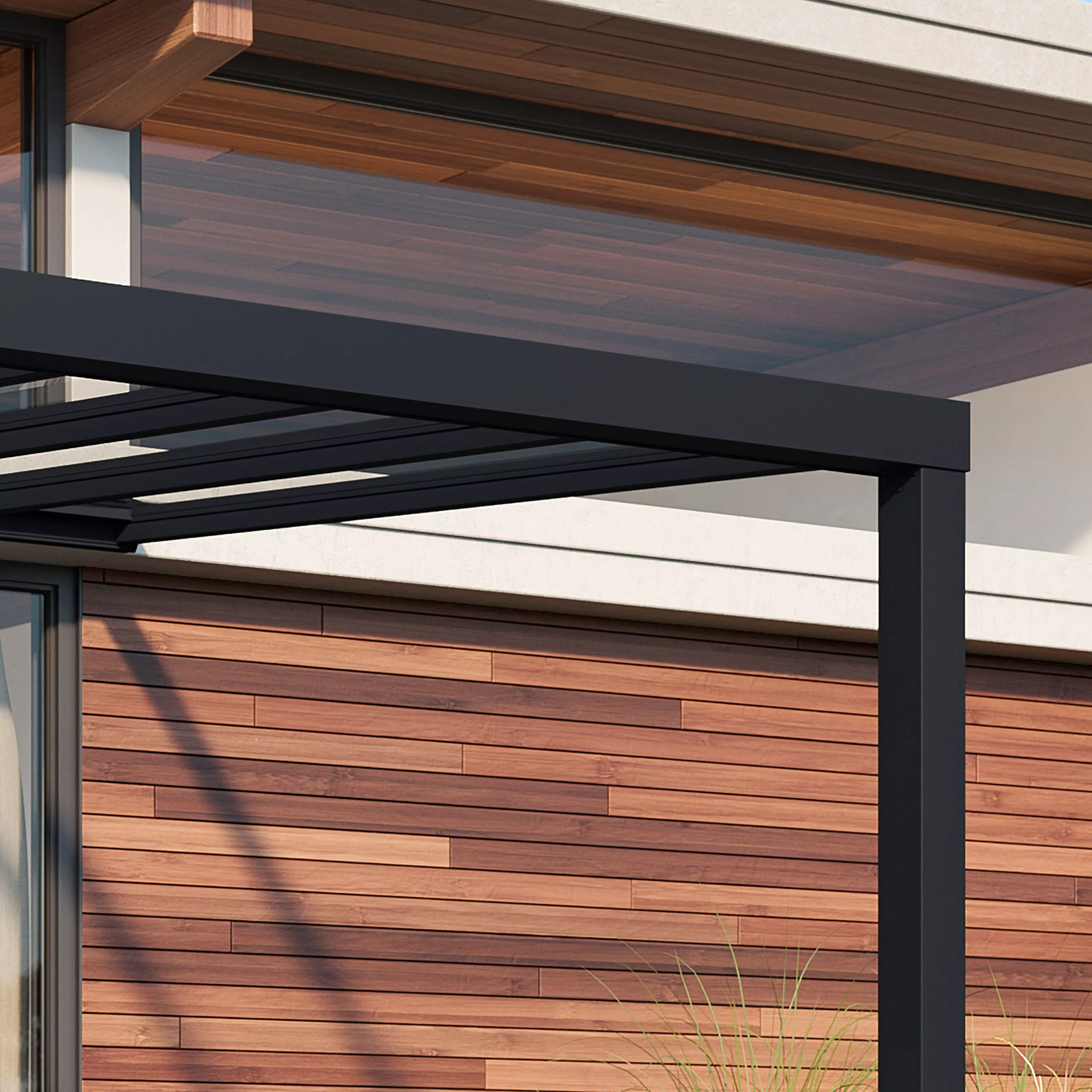 Add style to your home and backyard. Use your patio awning for outdoor dining, as a special place to hold your small holiday parties or special events. The Stockholm patio cover and outdoor structure has a robust, clean-lined design and provides you with an elegant living space to embrace the outdoors while being protected from the elements.