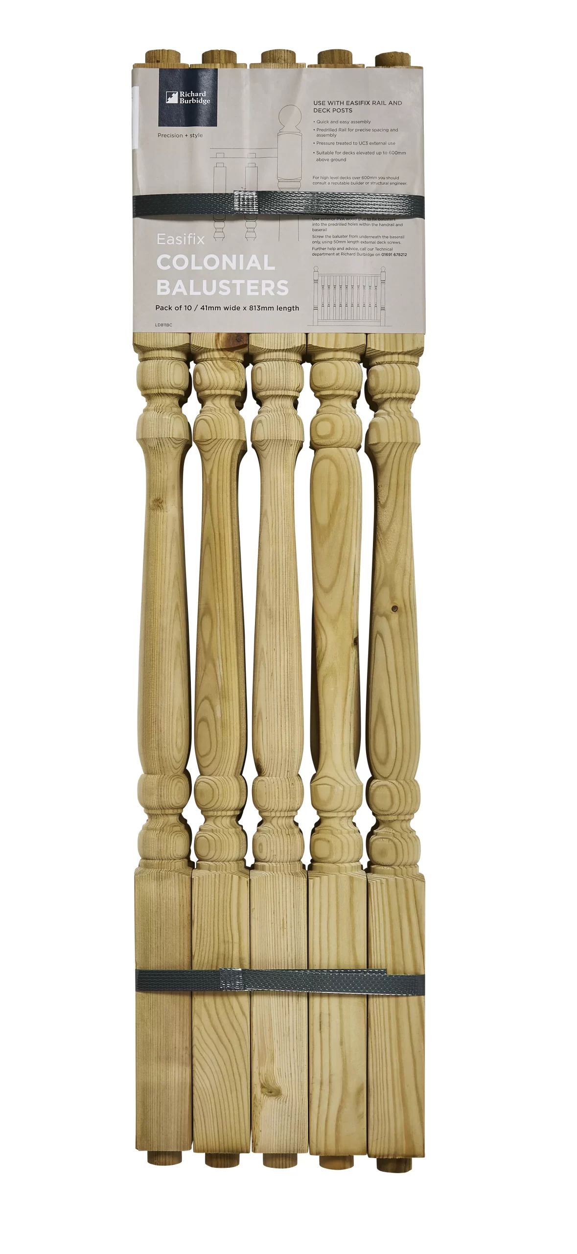 Elegantly finish off your decking with this pack of ten classic colonial balusters, which are easy to install and match stylistically with other colonial deck posts in our range, giving your decking area a complete, consistent look.