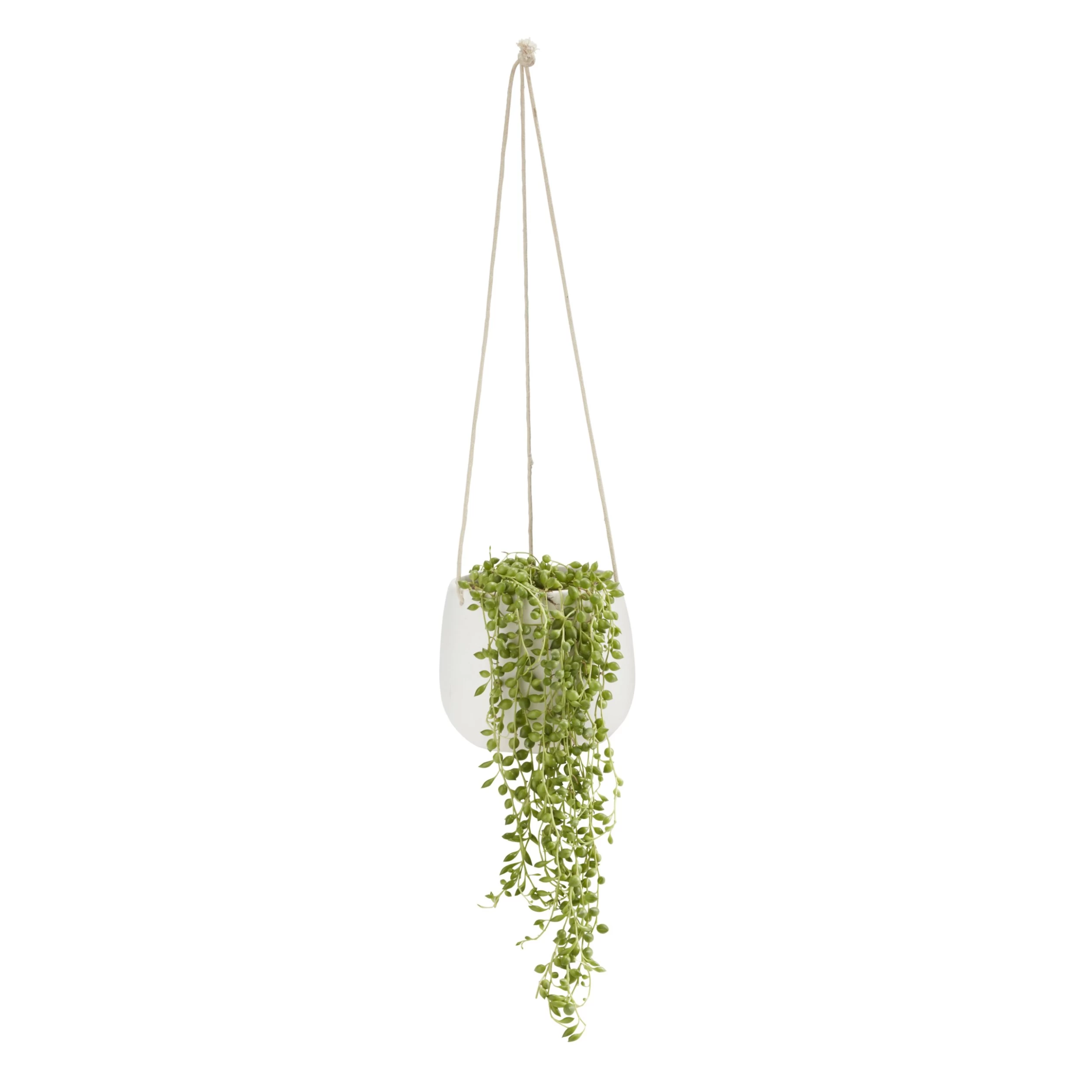 String Of Beads In 13cm White Ceramic Hanging Pot