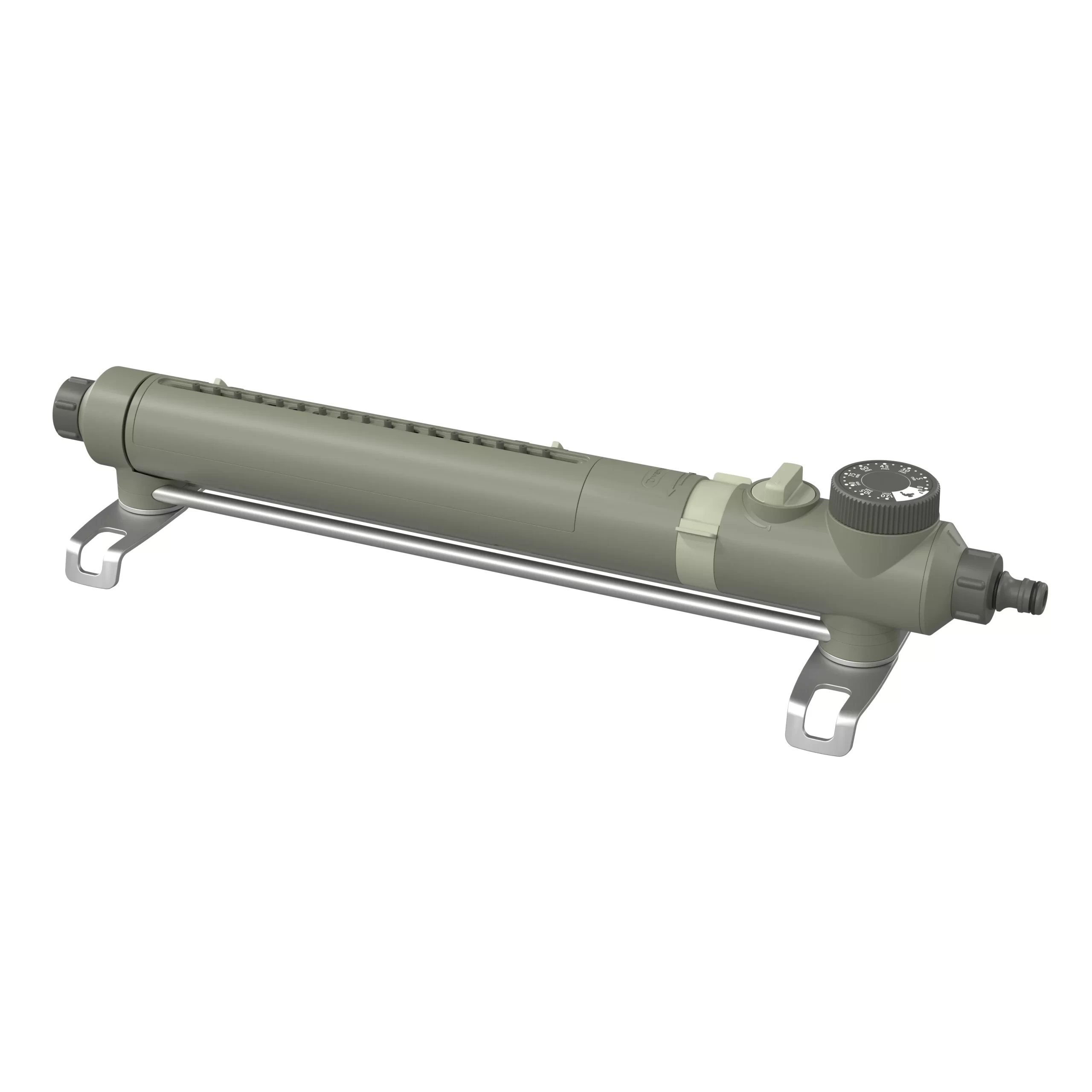 This Verve sprinkler incorporates a built in timer allowing you to control exactly how long the sprinkler waters for. There is also an override to allow for continual watering. Features a flow control adjustment as well as sliders to control the width and reach of the watering area.