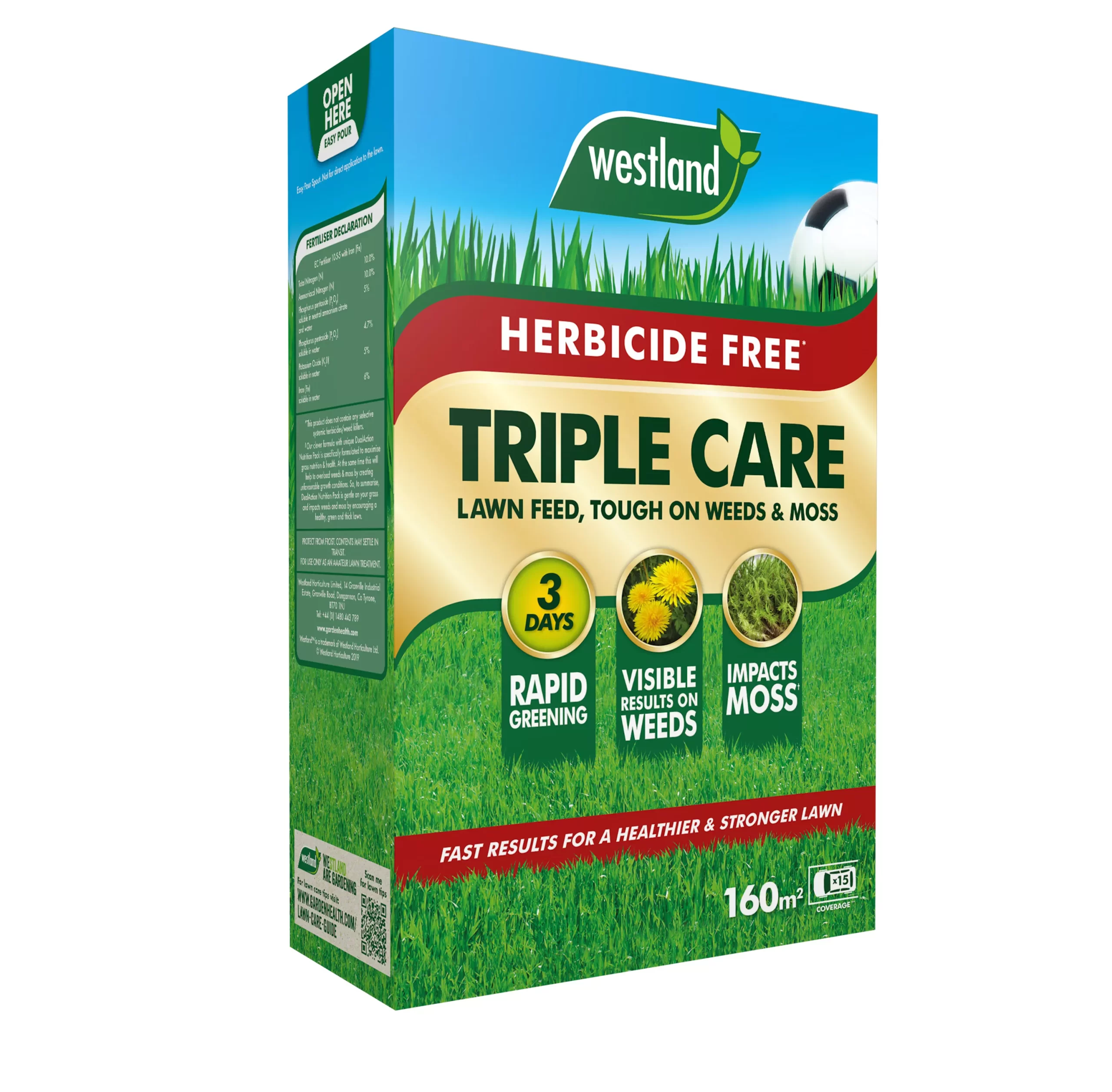 Aftercut Triple Care is a lawn treatment formulated to tackle weeds without herbicides. The added iron creates challenging conditions for moss to thrive. Additionally, the balanced nutrient levels create a healthier lawn that looks greener in just 3 days. Aftercut Triple care is also more sustainable as well as herbicide-free. It has the complete nutrient package including micronutrients.